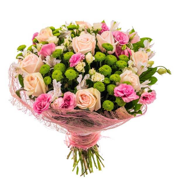 Изысканный и невероятно привлекательный букет состоит из множества разнообразных цветов. Теплота и нежная красота хризантем позволит вам с помощью этой цветочной композиции подчеркнуть свое уважение. Использование при создании букета роз в сочетании с необычными и яркими альстромериями, символизирующими дружеское расположение и удачу в жизни, создает невероятный микс, способный порадовать и принести множество положительных эмоций получателю, а также станет отличным способом выразить свои глубочайшие извинения перед дорогим человеком.